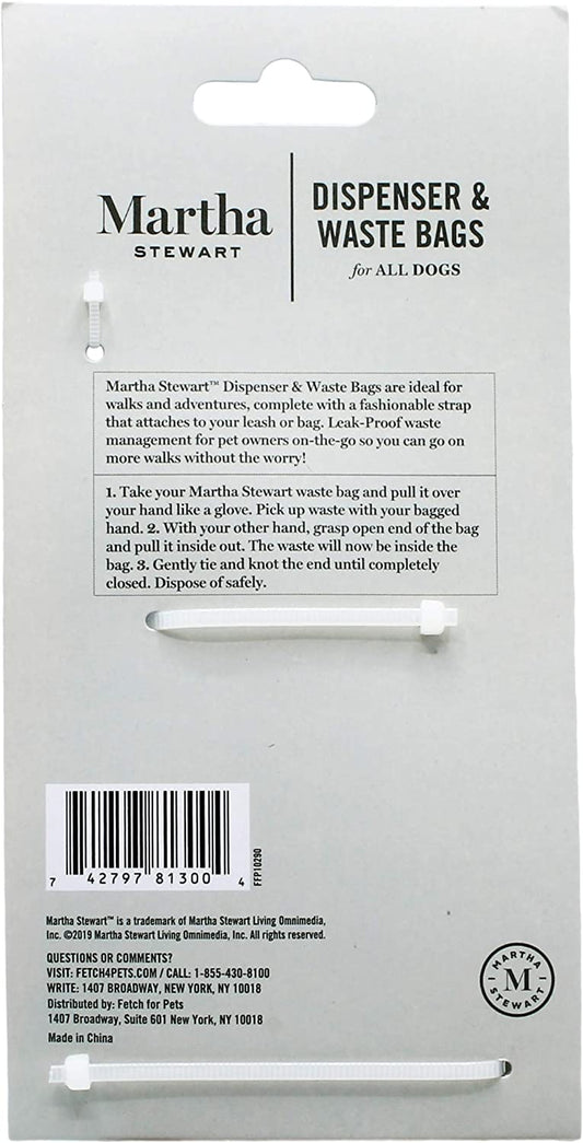 Martha Stewart Pets Waste Bag Dispenser with 30 Unscented, Tear-Resistant Dog Poop Bags, Leak-Proof and Stylish