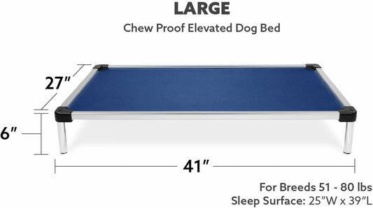 Chew Proof Elevated Cooling Dog Bed - Made for Aggressive Chewers, Virtually Indestructible, Ripstop Fabric with No Padding, Pre-Assembled - Large, Blue Quartz
